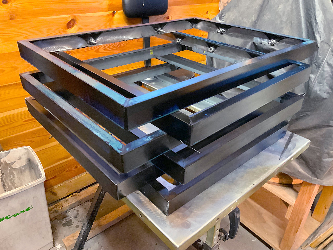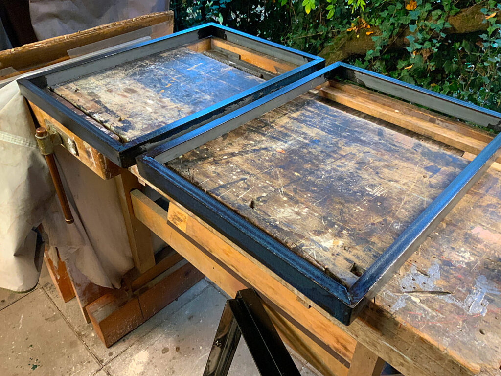 Dallglas, eingefasst von Hartbeton, rückseitig im Stahlrahmen verstärkt, Maße 62 x 45 x 6 cm (H x B x T); Gewicht 28 kg.