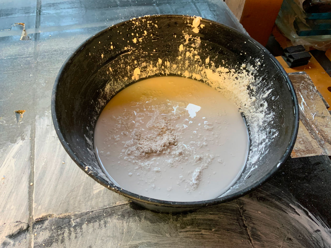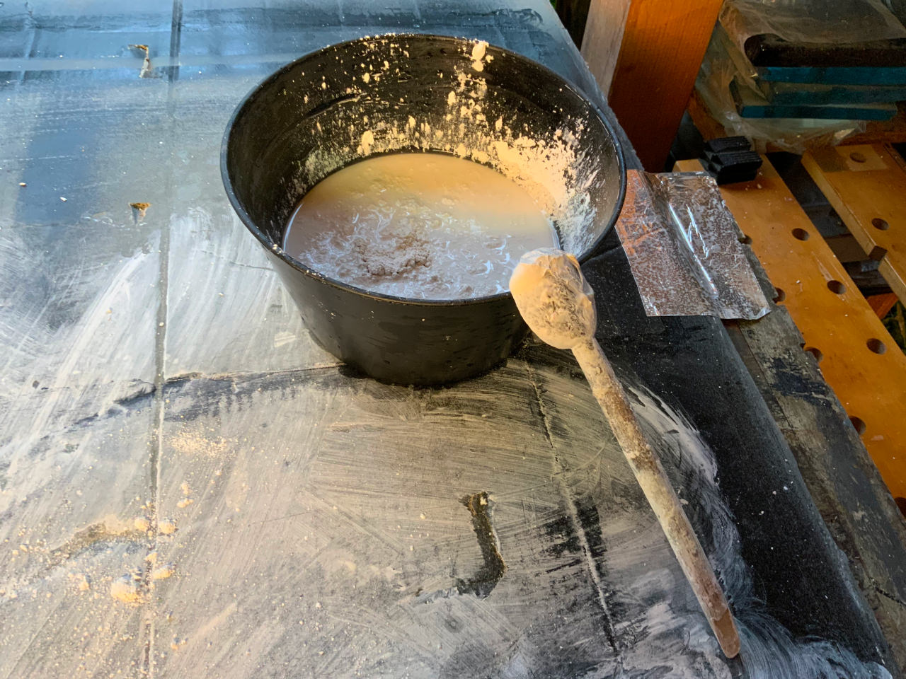 Meine anfänglichen Erfahrungen waren nicht ohne Rückschläge: es begann mit der ersten dünnen Schicht, die ich aufgegossen hatte, aber partout nicht trocknen wollte – trotz Fön (wegen der winterlichen Temperaturen in meiner Werkstatt).