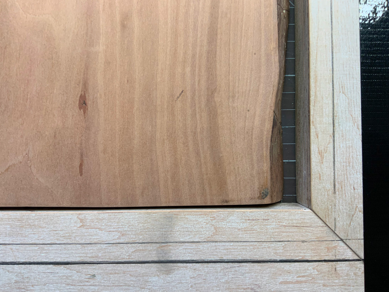 Im einfachsten Fall, nämlich bei einem rechtwinkligen Druckstock, wird dieser direkt an den Holzrahmen angelegt. Die auszutauschenden Farbplatten müssen natürlich das ABSOLUT GLEICHE MASS haben, damit kein Versatz beim Mehrfarbendruck entsteht.